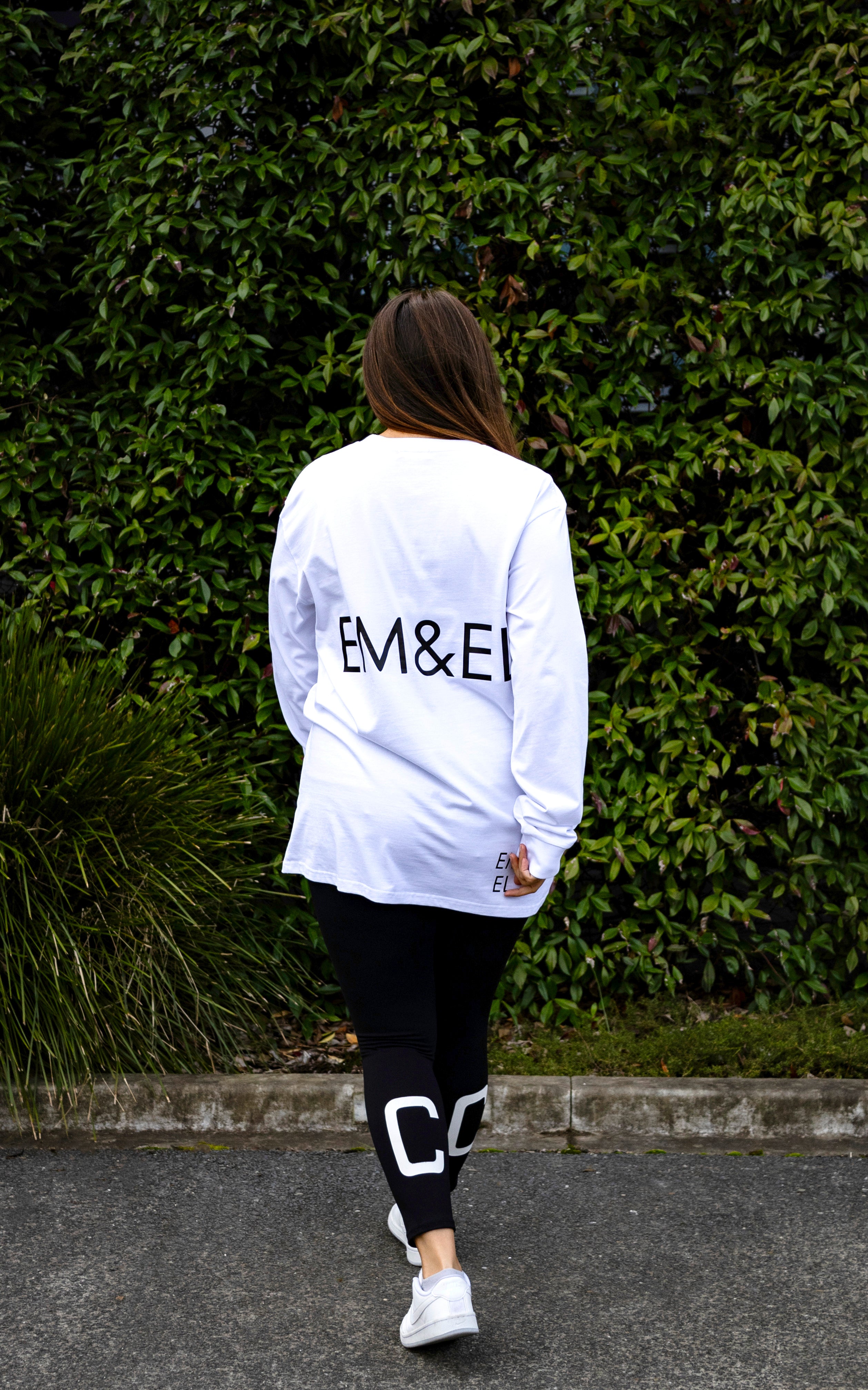 Elevate your streetwear game with our newest longsleeve. Crafted to seamlessly blend comfort, style, and attitude, this piece features eye-catching "EM&EL" lettering across the back. More than just a top, it's a daring declaration of confidence.Details:- Rounded neckline- Long sleeves- White longsleeve with EM&EL writing- Material: Cotton/Viscose- Designed in New Zealand. Made in ChinaSize & Fit:Holly 172cm in height, normally a size 14 and she is wearing a size XL.Buy your normal size for a relaxed fit.