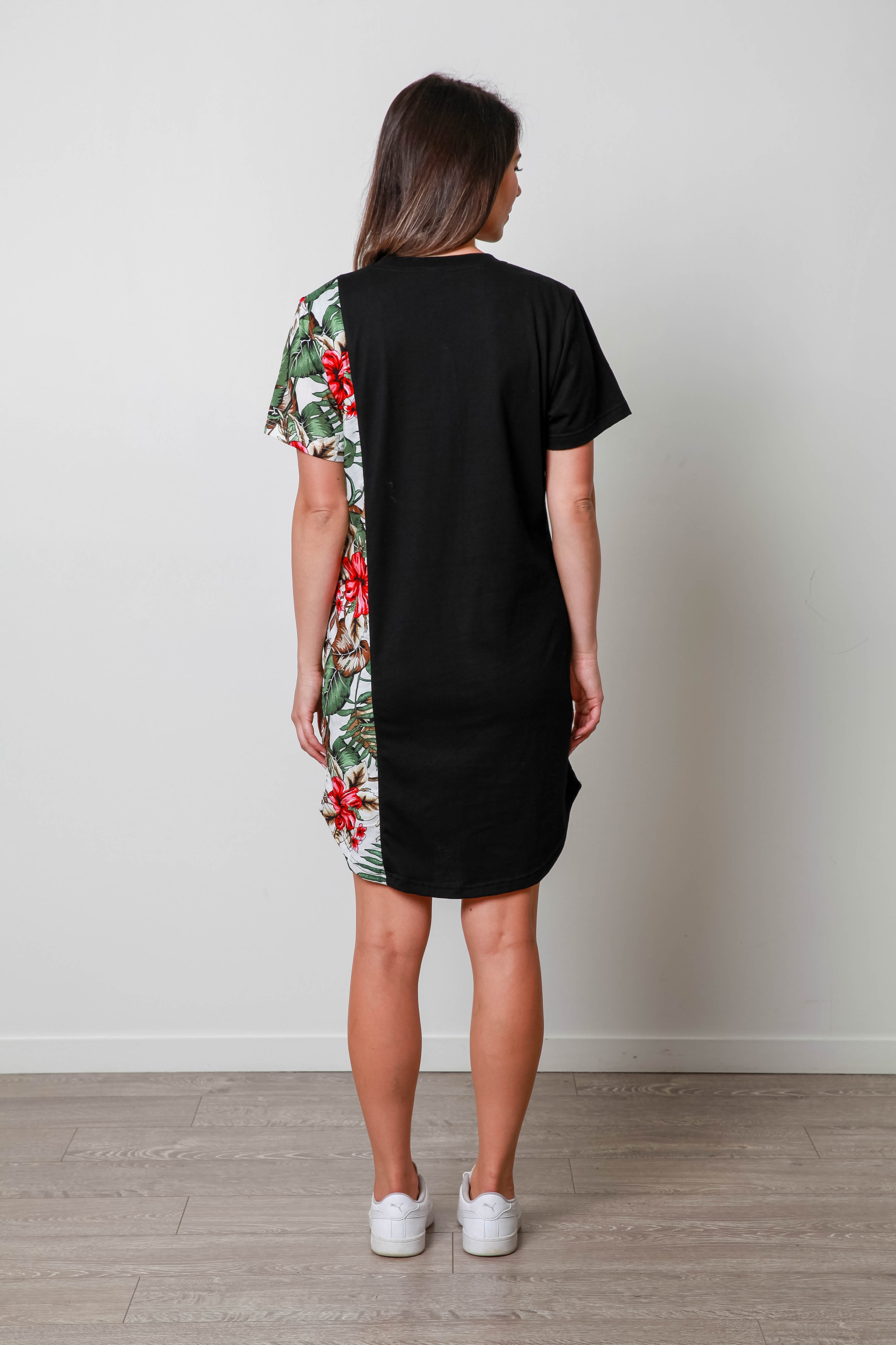 The ultimate tee dress with a difference!Stay comfy and cool this season in one of our Side Dresses! They feature a stunning printed down one side that spreads onto the front and back - It’s not your average tee dress, that’s for sure!Pair with your favourite sneakers or slides for an effortlessly cool summer’s day look.Details:- Tee dress style shape- Rounded neckline- Short sleeves- Curved hemline that goes up at the sides- Slightly longer length at the back- Satin print down the side- Material: Cotton/Polyester* The satin material is very delicate, please follow the garment care label.Size & Fit: