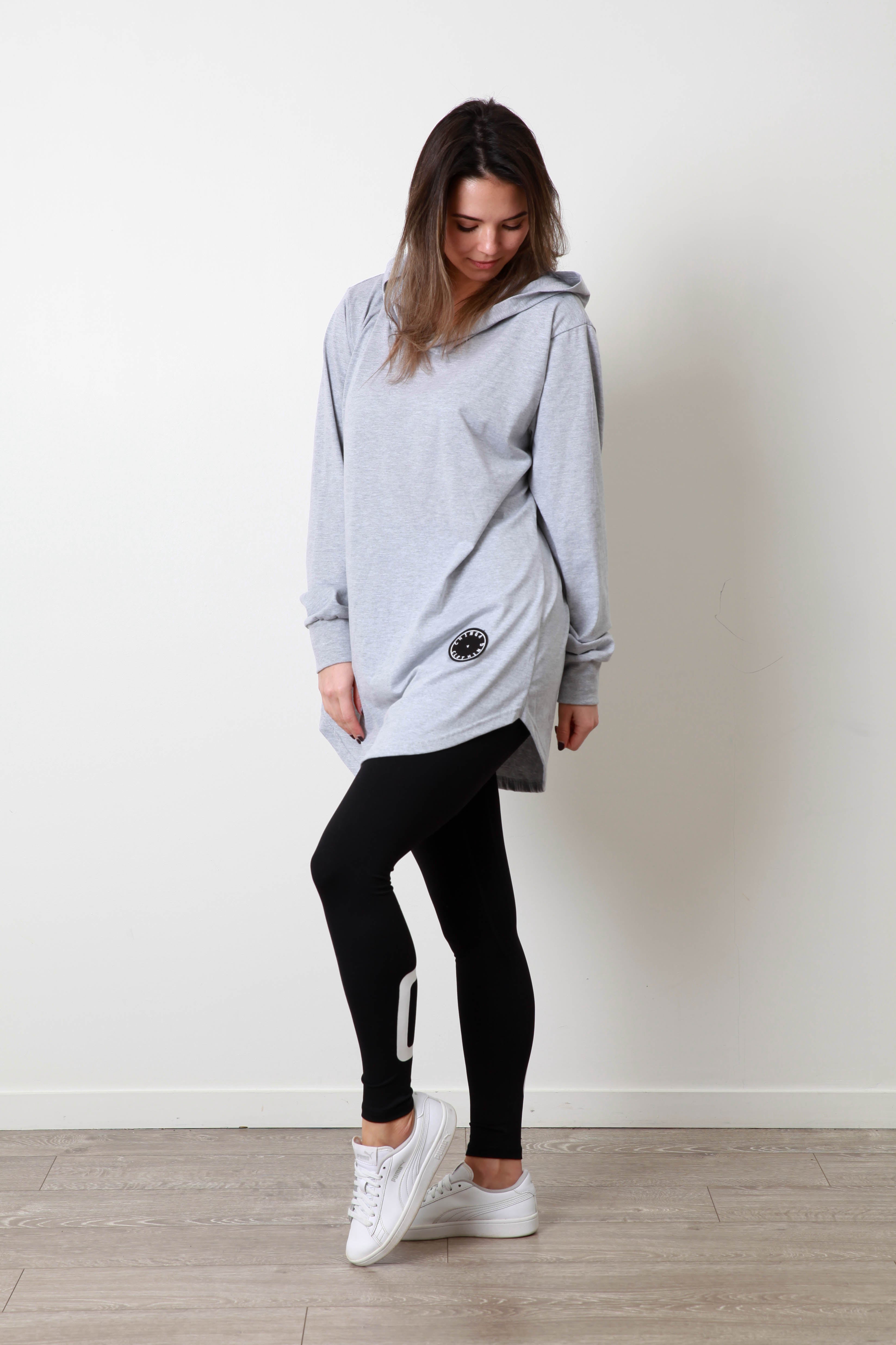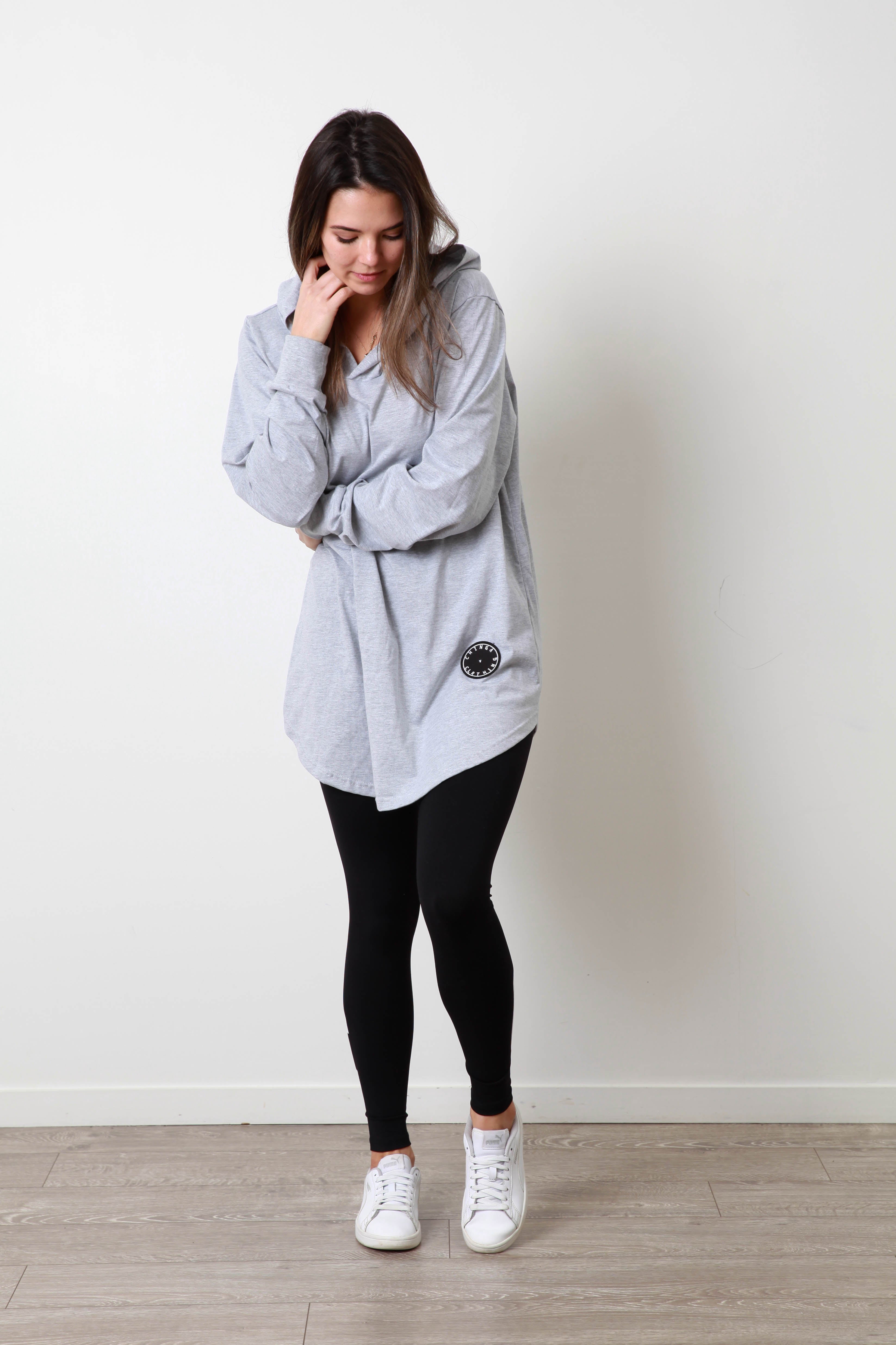 The perfect lightweight fabric for when you need that extra layer, and the curved hem looks great styled underneath a jacket and paired with a pair of leggings or trackies.Its soft material gives comfort and breathability. Details:- No pockets- Hood- Curved hemline- Light weight t-shirt material- Black Chinga patchMain body made from soft, breathable 100% cotton. Cuffs crafted from durable polyester for a snug fit.