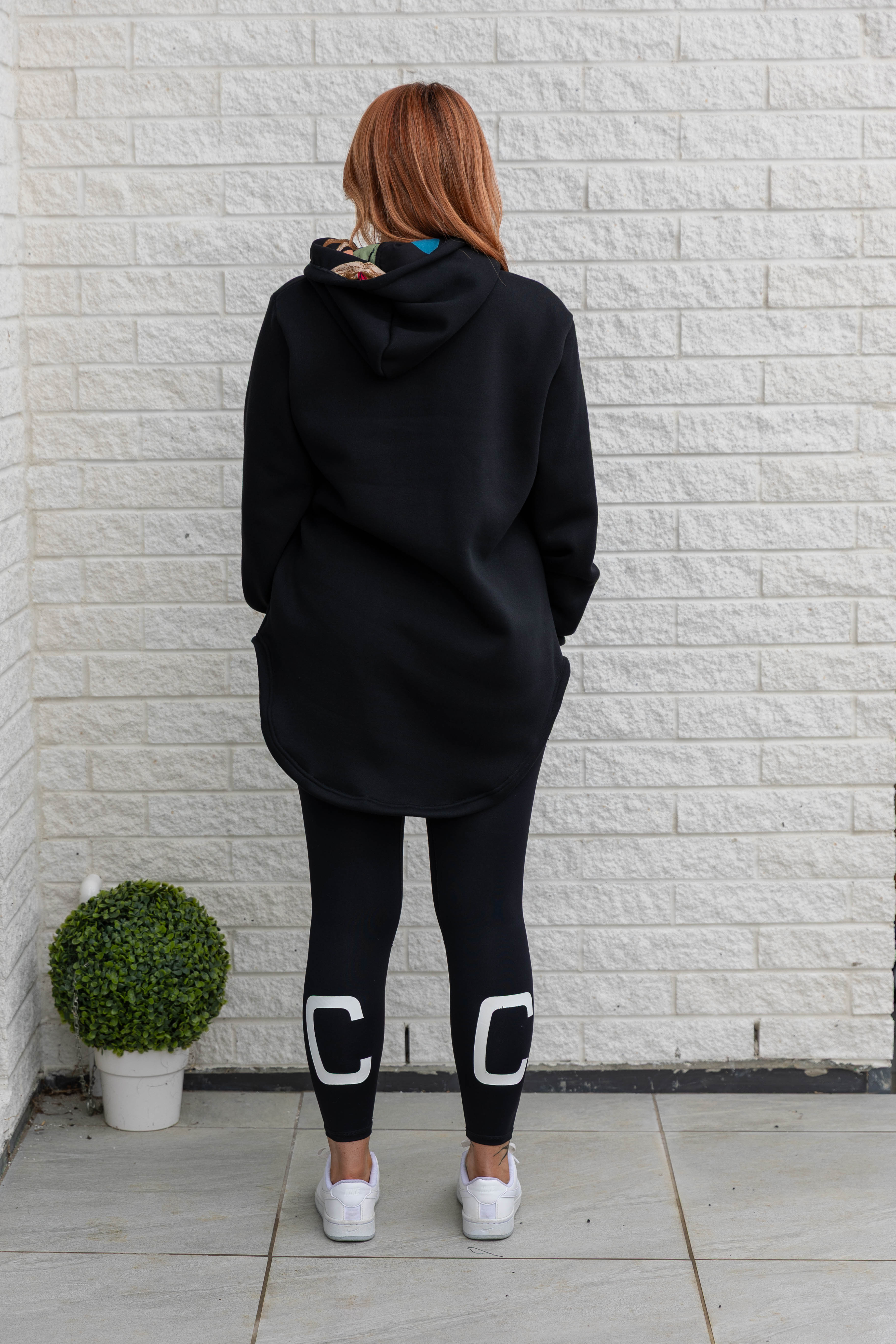 Stay warm and toasty during the cooler weather with this thick, super soft fleece lined hoody. Soft to the touch and just gorgeous to wear!Our hoodies are designed with a parachute cut that is wider at the bottom to compliment any figure. They also feature a curved hemline that splits at the sides and is longer at the back.Pair with your favourite trackies or over a pair of tights for an effortless look.Details: