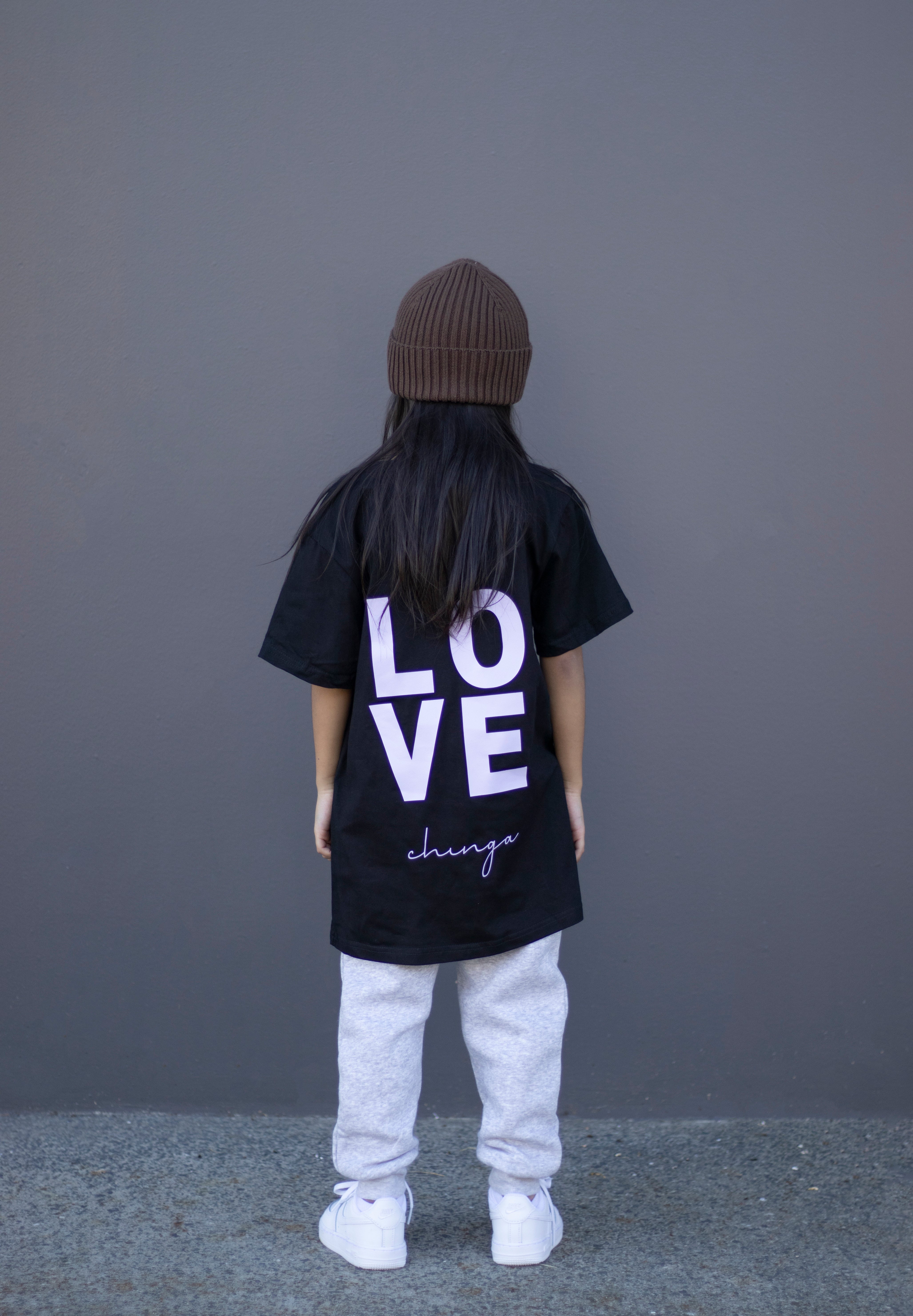 This charming children's t-shirt offers a gentle rounded neckline and short sleeves to ensure comfort and convenience. The back features intricate "Love" embellishments and a lively design, introducing a playful element. Ideal for playdates or relaxed outings, this tee effortlessly blends style with comfort.